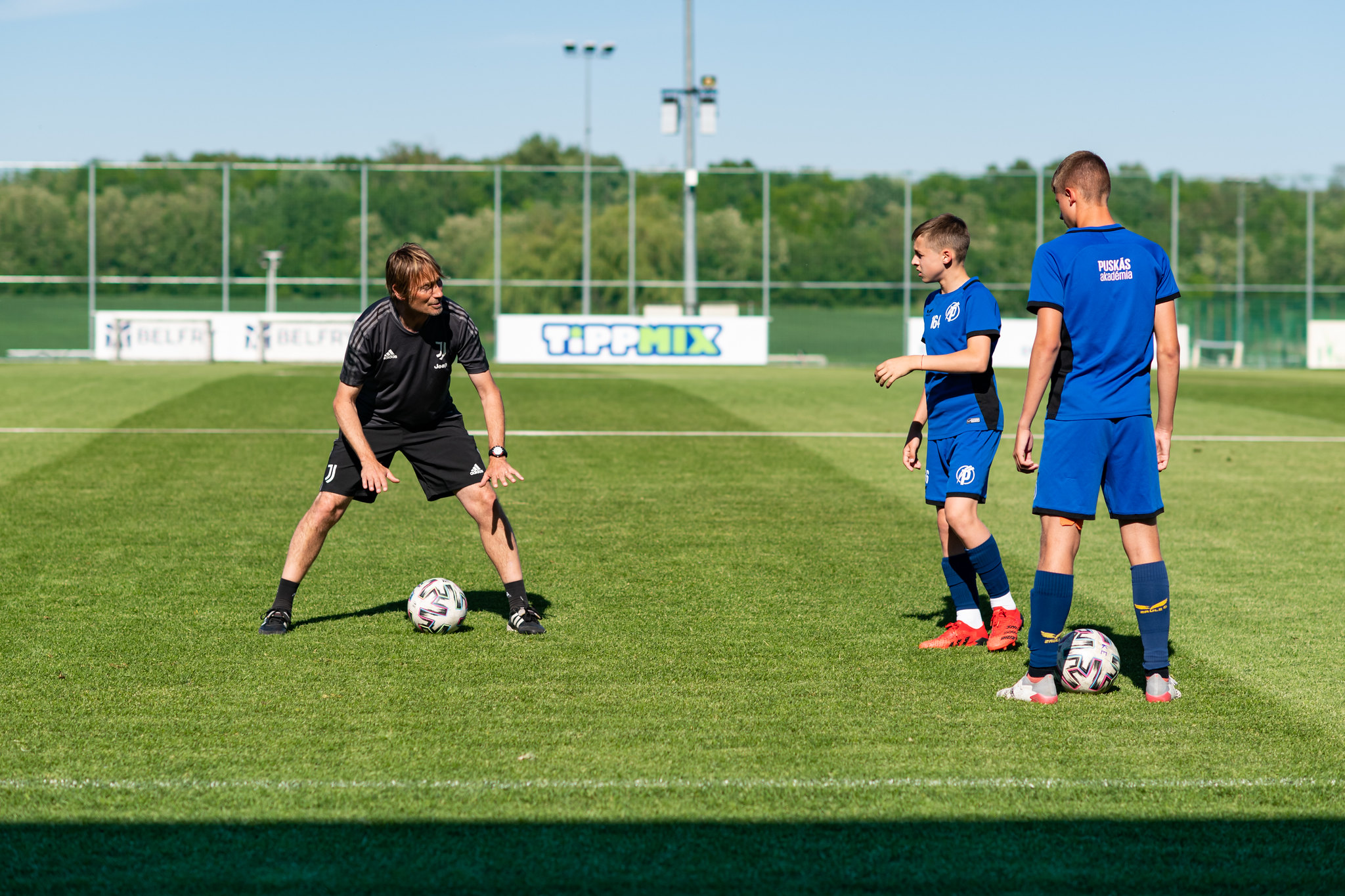A negyven perces képzést követően a Juventustól érkező Alberto Lampo és Bruno Loureiro az U14-es korosztályunk játékosaival kezdte meg a gyakorlati bemutatót. Az Olaszországból érkező szakemberek a szélső hátvédek képzését mutatták be. A cselezési lehetőségeket, a mélységi indításokat és a beadásokat vették sorra a játékosokkal. Az érdekes különbség volt még, hogy az Olaszországból érkező trénerek folyamatos kontaktot létesítettek a játékosokkal, szinte az összes jó megmozdulást egy „pacsival” jutalmazták.