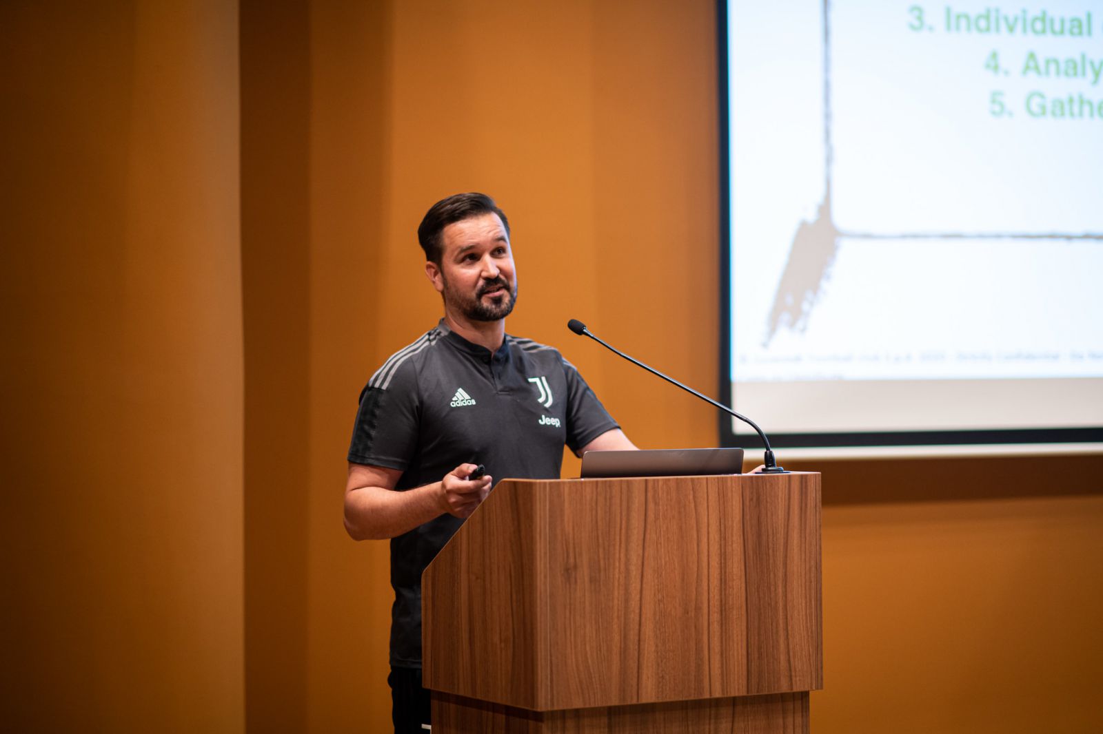 A nap következő előadói, Alberto Lampo és Bruno Loureiro egy hasonlóan nagy múltú csapattól érkeztek, a Juventustól. Előbbi kezdte a prezentációját. Fényképek és videófelvételek segítségével posztonként mutatta be a különböző edzésszituációkat.