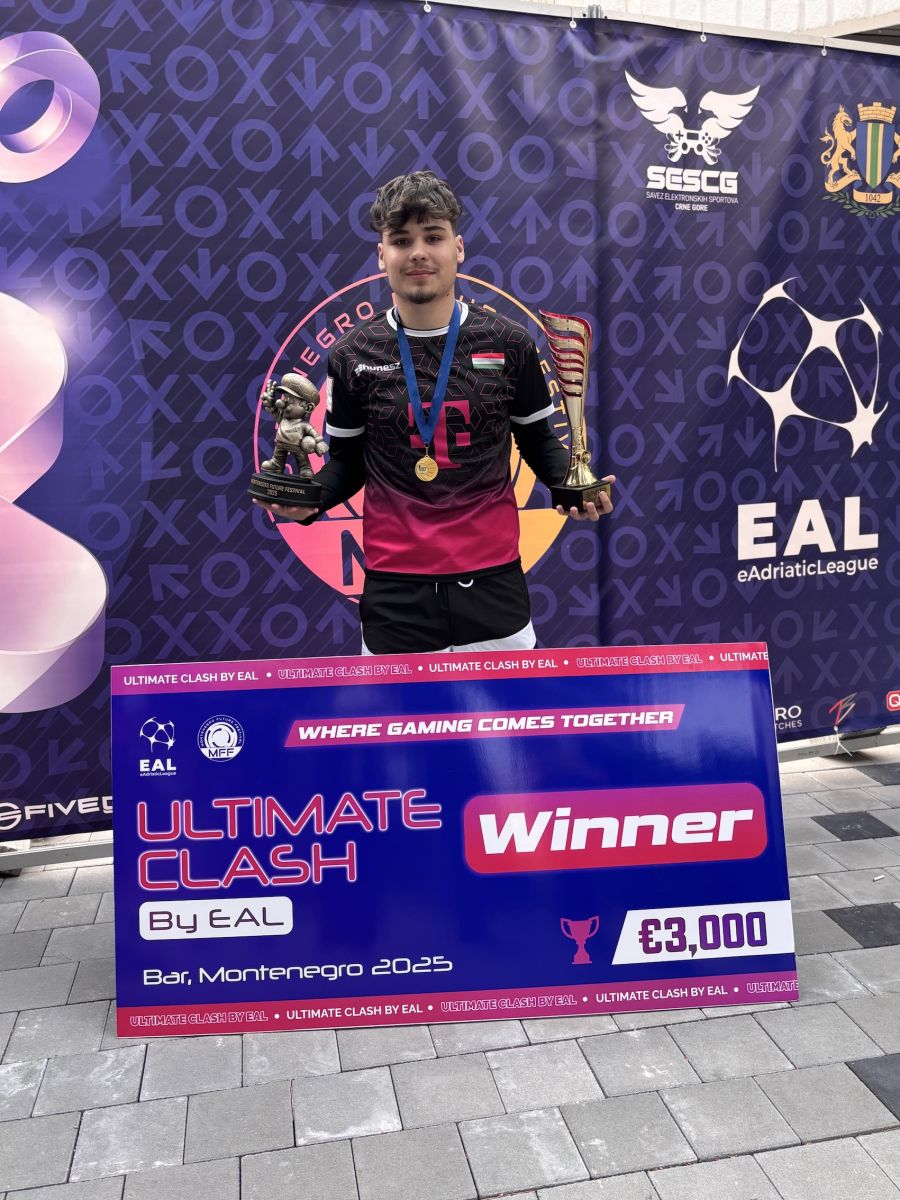 A Montenegro Future Festival hasonló nemzetközi rendezvény, mint itthon az OGEX (Országos Gaming EXPO), ám a balkáni országban rendezett fesztivál európai szinten is az egyik legnagyobbnak számít. Ennek keretein belül rendeztek EA FC 25 kategóriában is versenyt az eAdriatic League égisze alatt, melyen a magyar válogatott két tagja, Vén Balázs, illetve a Puskás eSport csapatának jobbszélsője, illetve egyéniben is vezető spílere, Pankovics Roland indult. A páros olyan jól teljesített, hogy meg is nyerte a 2v2 kategóriát (ilyenkor nem egyszerre, hanem felváltva „fifáznak” a versenyzők). Pankó, azaz Pankovics Roland az utóbbi időben számos szép sikert ért el egyéniben, mint a Puskás eSport csapat tagja (IPON x TrollFoci EA FC 25 offline bajnokság, FC PRO OPEN CUP), hogy kivívta magának a montenegrói versenyen való indulást. Ennek apropóján beszélgettünk vele.