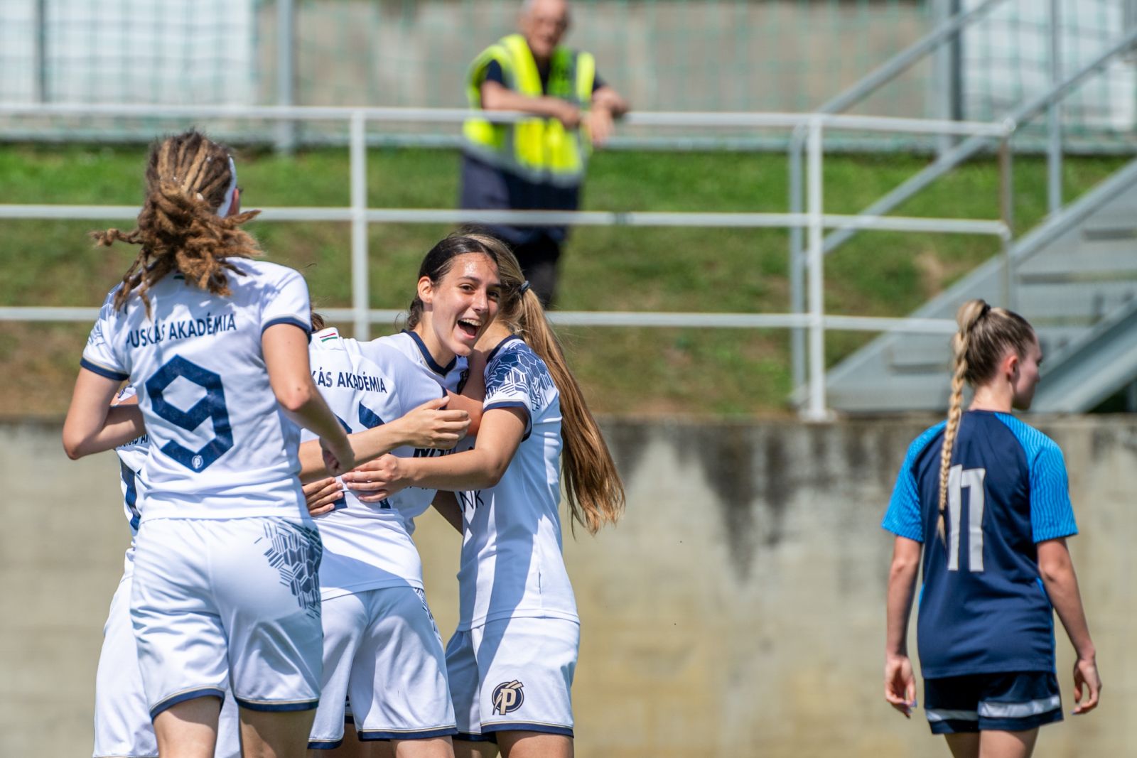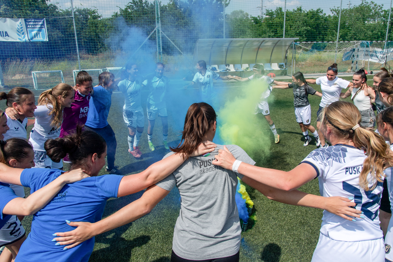 A bajnoki címet korábban idegenben kiharcoló korosztály a hőség ellenére is kitett magáért az MTK elleni hazai szezonzáró bajnokin. A pályán ugyan nem követte gólparádé a „tűzijátékot”, ám a pezsgőfürdő így sem maradhatott el. Nagy gratula, lányok! A második helyen az FTC, a harmadikon a kék-fehérek, a negyediken a szegediek zártak.