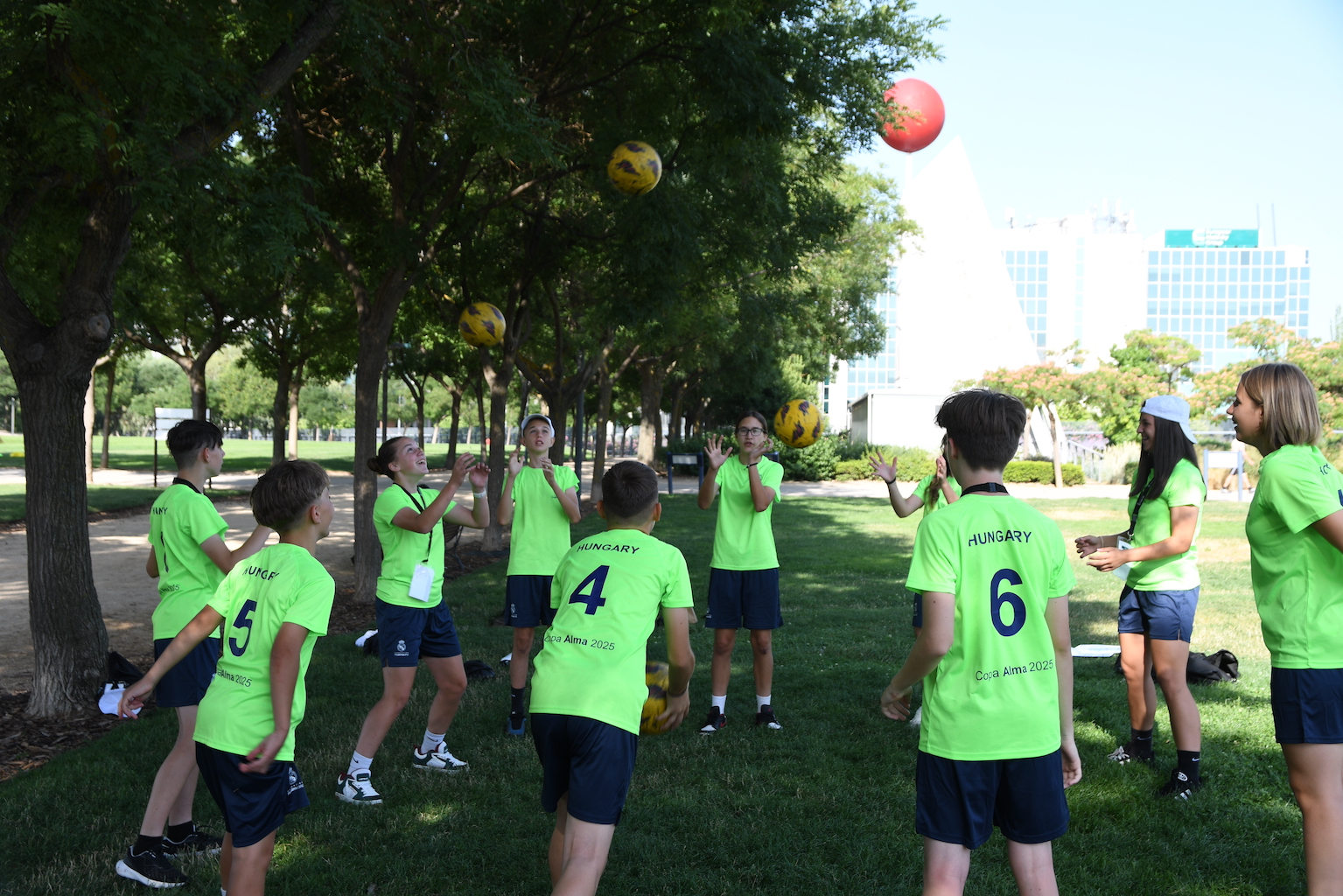 A vasárnap reggeli program a Juan Carlo parkban kezdődött. A Real Madrid Alapítvány koordinátorai és vezetői is sportruházatot öltve várták 11 helyszínen a 11 csapatot, miután a futballhoz erősen kapcsolódó akadályverseny várt a gyerekekre. A kihívás teljesítésére szűk másfél óra állt rendelkezésre. A csapatunk minden pályát teljesített, amire rajtunk kívül csak a lengyelek voltak képesek.
