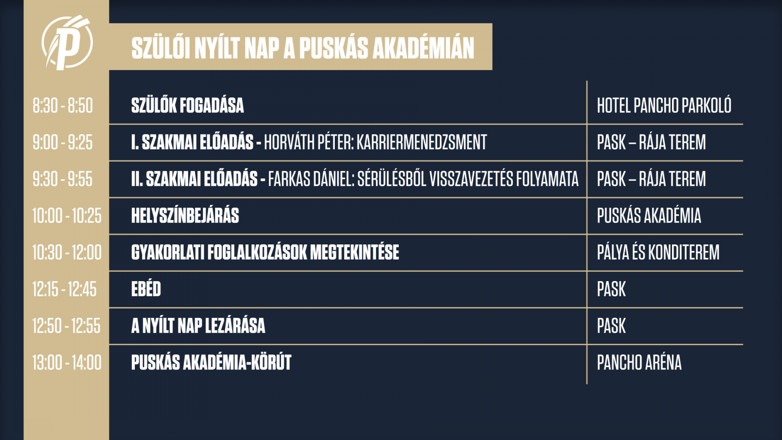 Szeretettel meghívjuk Önöket a Puskás Akadémia nyílt napjára, ahol megnézhetik, hogyan telnek gyermekeik mindennapjai nálunk, és hogy megmutassuk: akadémiánk nemcsak a sport, hanem a közösség és a fejlődés helye is.