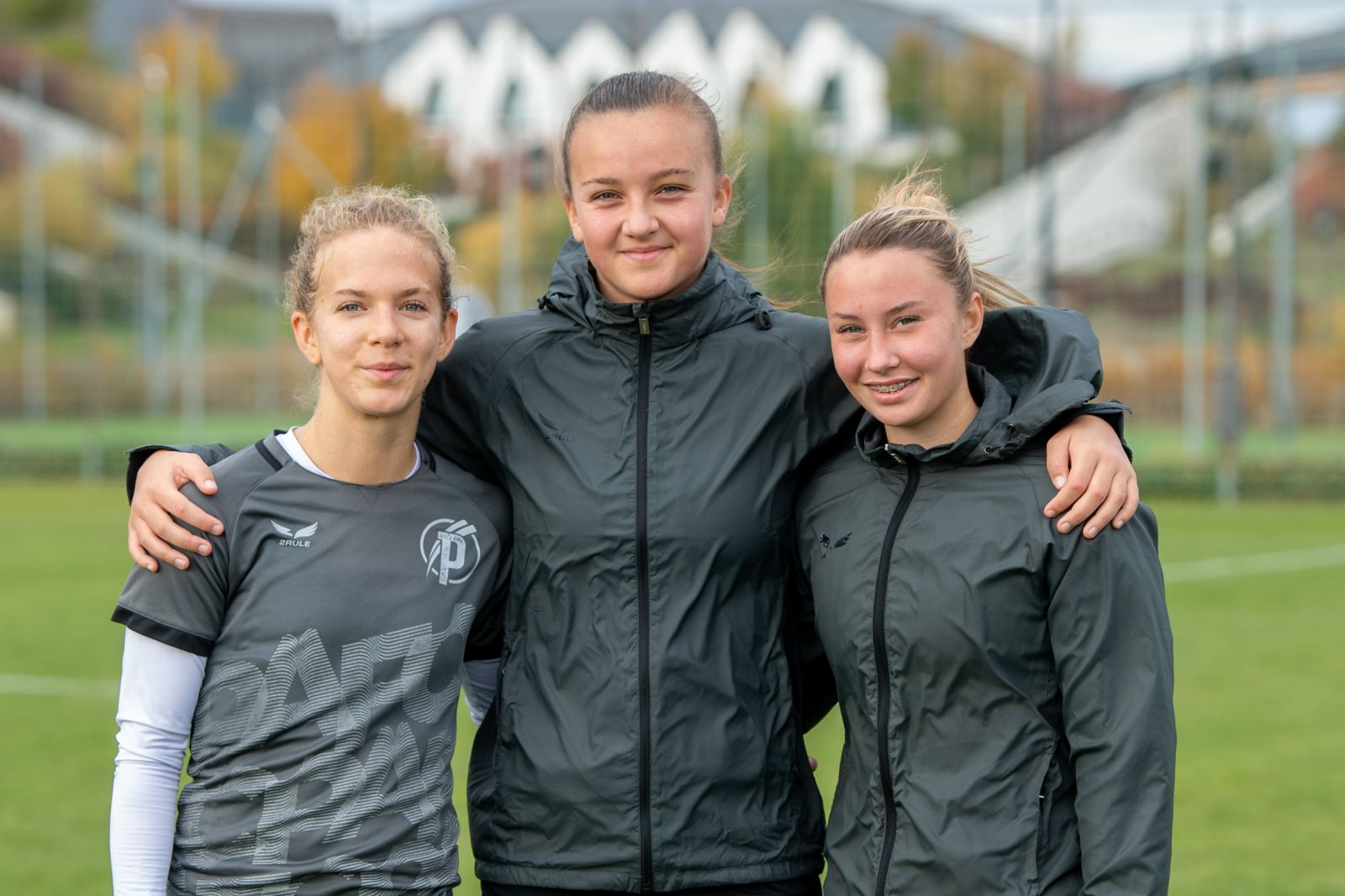 És az U19-es válogatottal szintet lépő három – de már jó ideje NB I-es szinten futballozó – akadémistánk, Szarvas Sára, Brekovszki Julianna és Sági Panna: