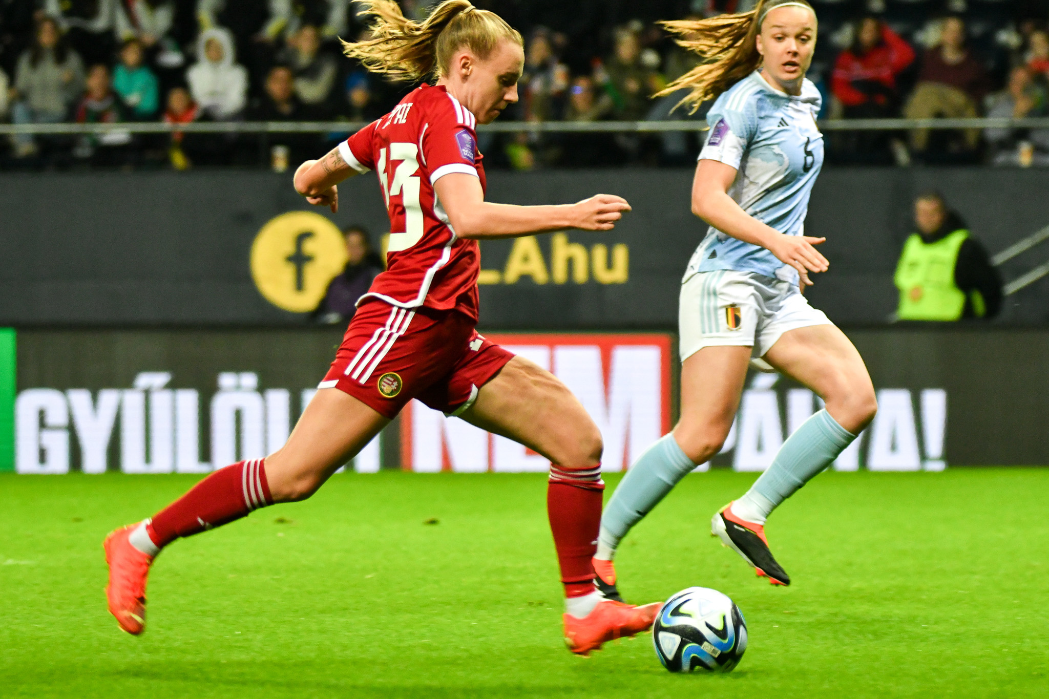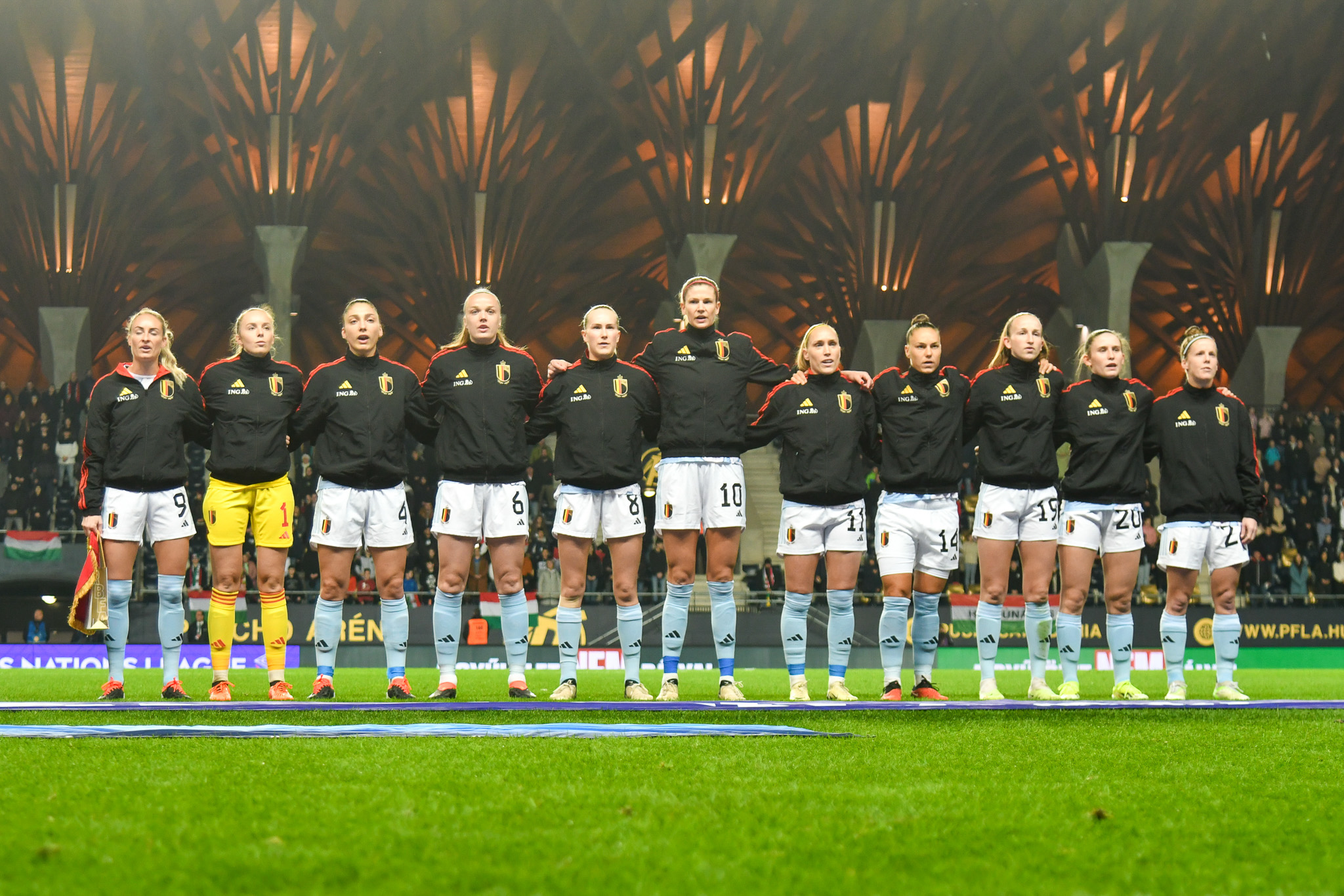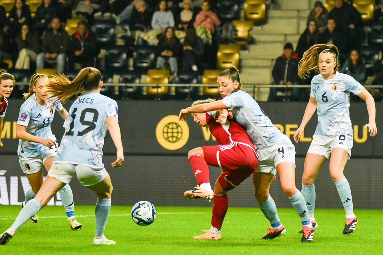 A magyar csapat jól kezdett, meg is szerezte e vezetést egy gyönyörő szabadúgás-fejes kombináció után, de a belgák fizikai és tudásbeli fölénye egyre inkább kicsúcsosodott. Nagy fölényben játszottak a második félidőben. A cserék közé jelölt Palakovics Laura nem lépett pályára. A visszavágót kedden 20 órától rendezik, de a látottak alapján nagy különbség van a két csapat között. Ettől függetlenül a meccs elején látható jó és bátor játékra lehet építeni a jövőben.