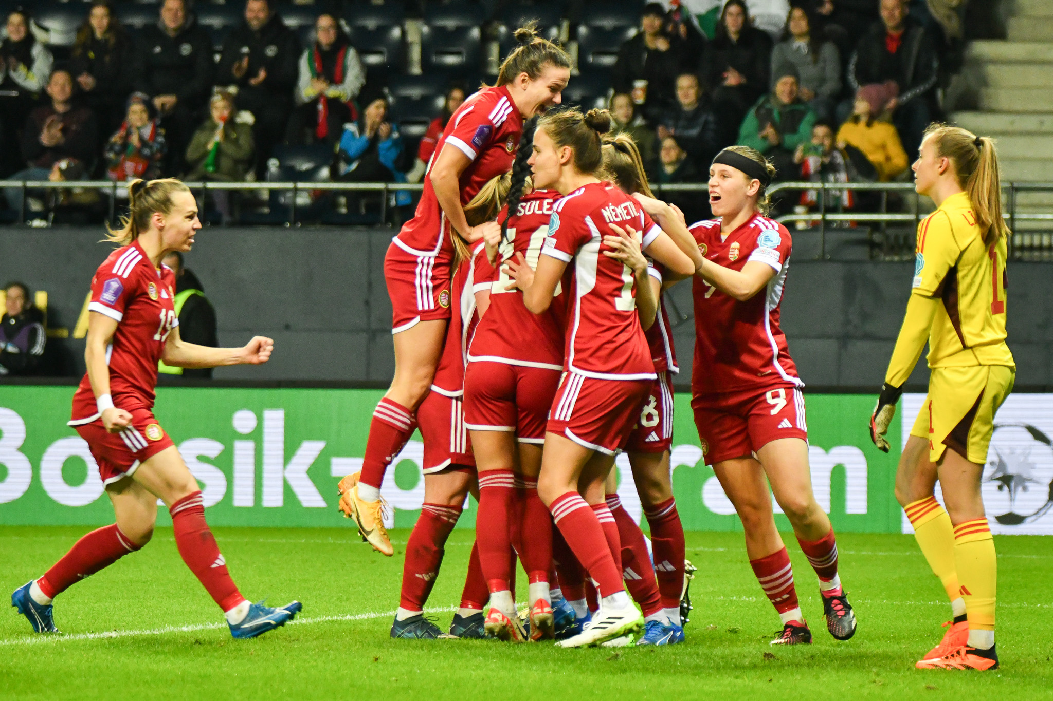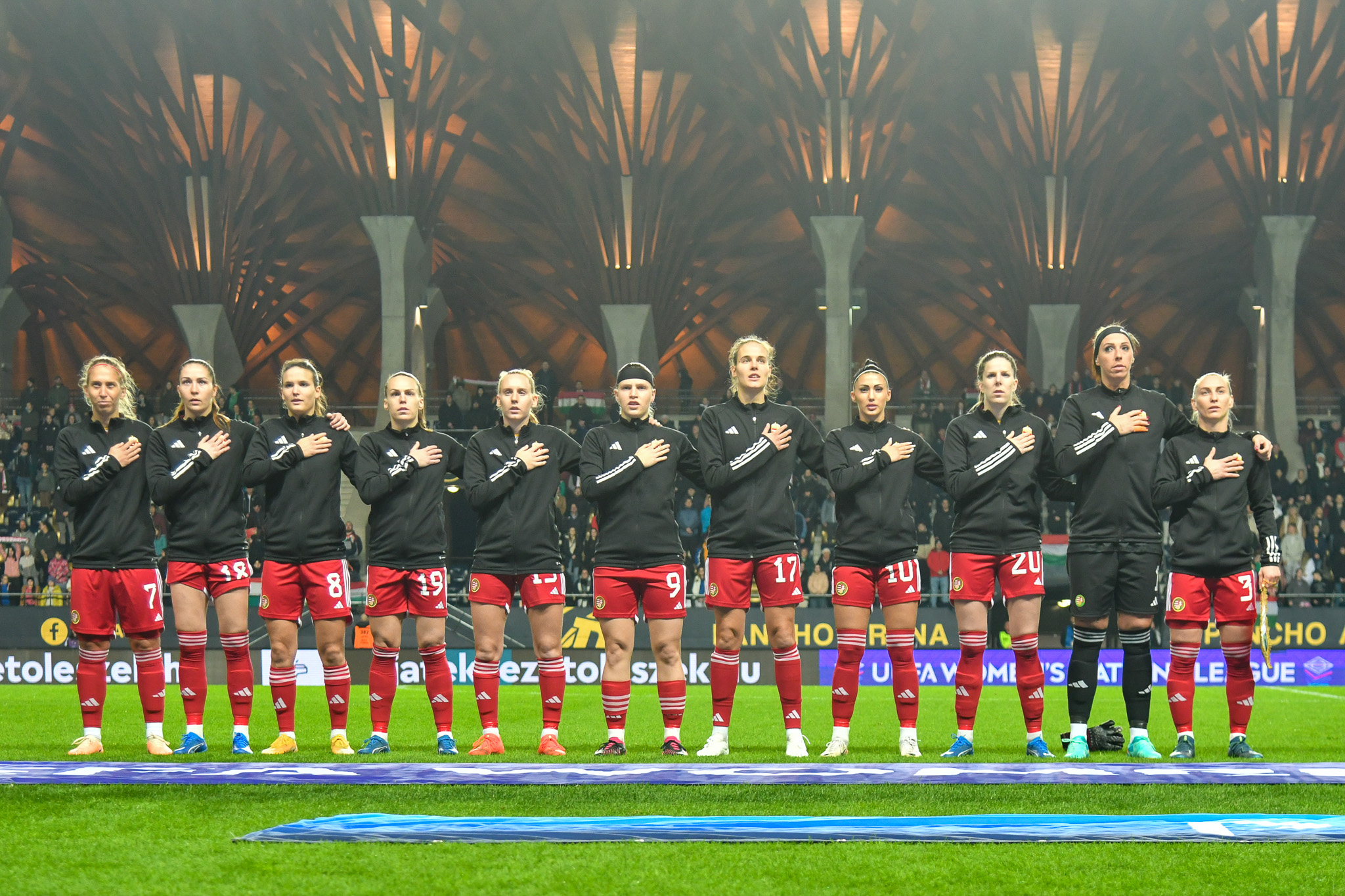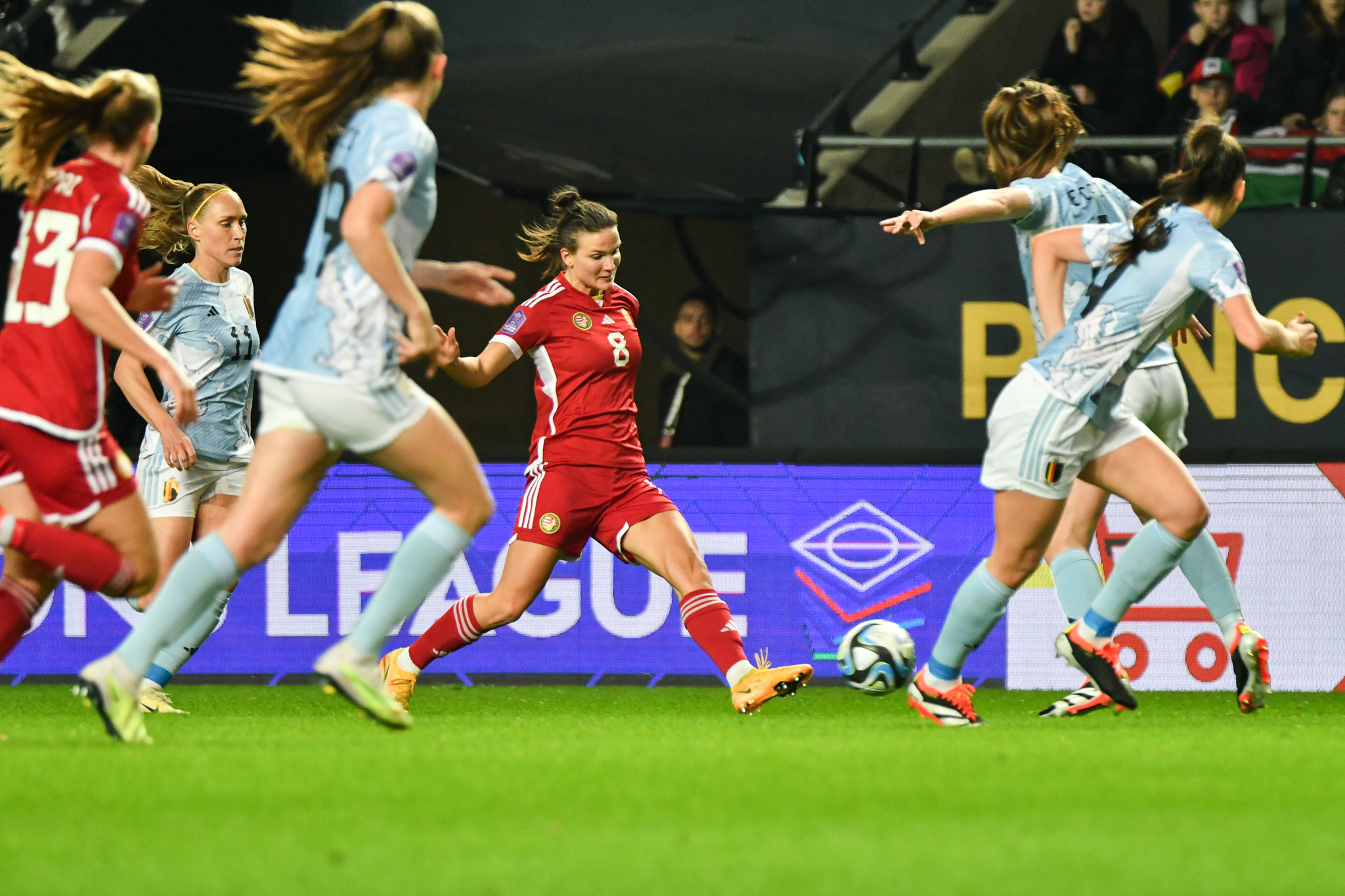 A magyar csapat jól kezdett, meg is szerezte e vezetést egy gyönyörő szabadúgás-fejes kombináció után, de a belgák fizikai és tudásbeli fölénye egyre inkább kicsúcsosodott. Nagy fölényben játszottak a második félidőben. A cserék közé jelölt Palakovics Laura nem lépett pályára. A visszavágót kedden 20 órától rendezik, de a látottak alapján nagy különbség van a két csapat között. Ettől függetlenül a meccs elején látható jó és bátor játékra lehet építeni a jövőben.