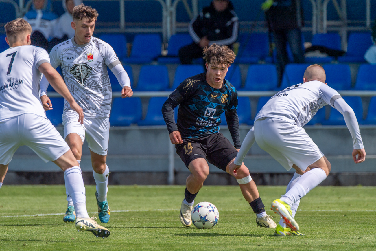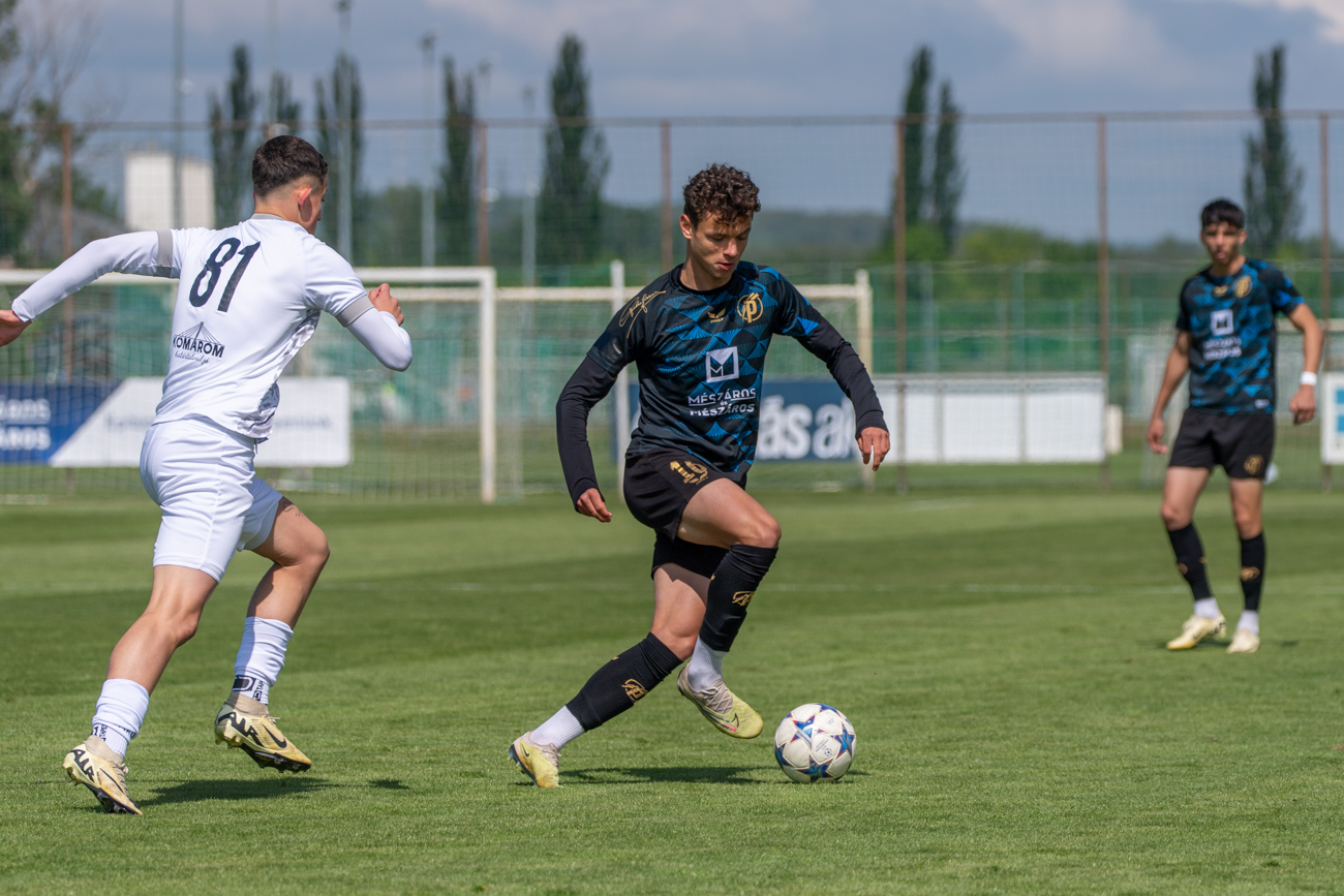 A Komárom volt edzőnkkel, Burányi Tamással és egykori akadémistáinkkal, Kalmár Benedekkel és Koch Leventével a kezdőben állt ki a meccsre (később Tímári Norman is beállt a régi ismerősök közül), de nem indult jól számukra a talákozó, hiszen két perc után elveszítették csapatkapitányukat, aki utolsó emberként szabálytalanságot követett el, ezért kiállította a bíró. Ezután szebbnél szebb támadásokkal sikerült feltörnünk a megzavaradó védelmet, de nem jártunk sikerrel. A második félidőben nyomtunk, amennyire tudtunk, de a szívósan védekező Komárom kivédekezte a hátralévő időt. A pár éve még egy szezon erejéig játékosként is értünk hajtó Burányi Tomi és csapata most túljárt az eszünkön. Folytatás egy hét múlva Szombathelyen.