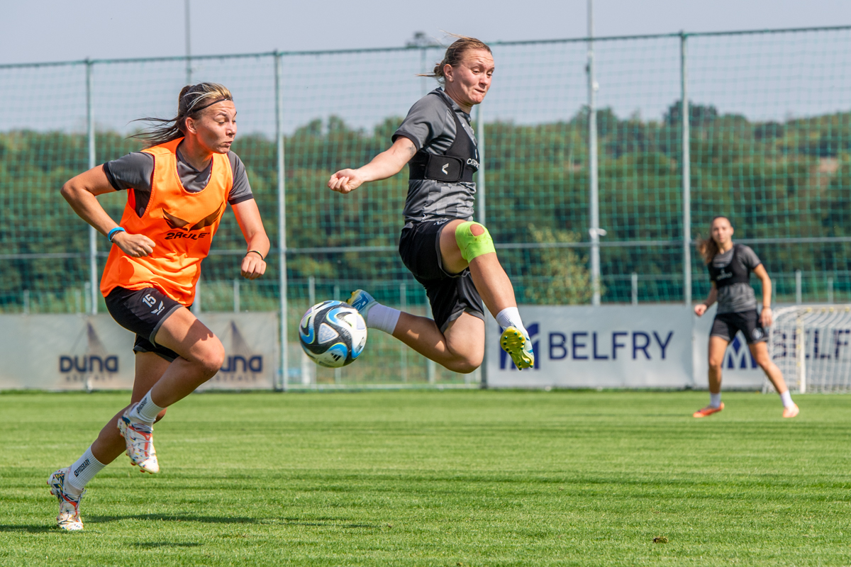 Halászi Kinga tanítványai remek rajtot vettek az idei szezonban. Három meccsből hármat nyertek, majd a nagy rivális MTK otthonában egy pillanatnyi kihagyás miatt botlottak ugyan, de az összkép mindenképpen bizakodásra ad okot. Erről magunk is meggyőződhettünk, amikor kilátogattunk a szerdai edzésre, amelyen minden játékos beleadott apait-anyait.